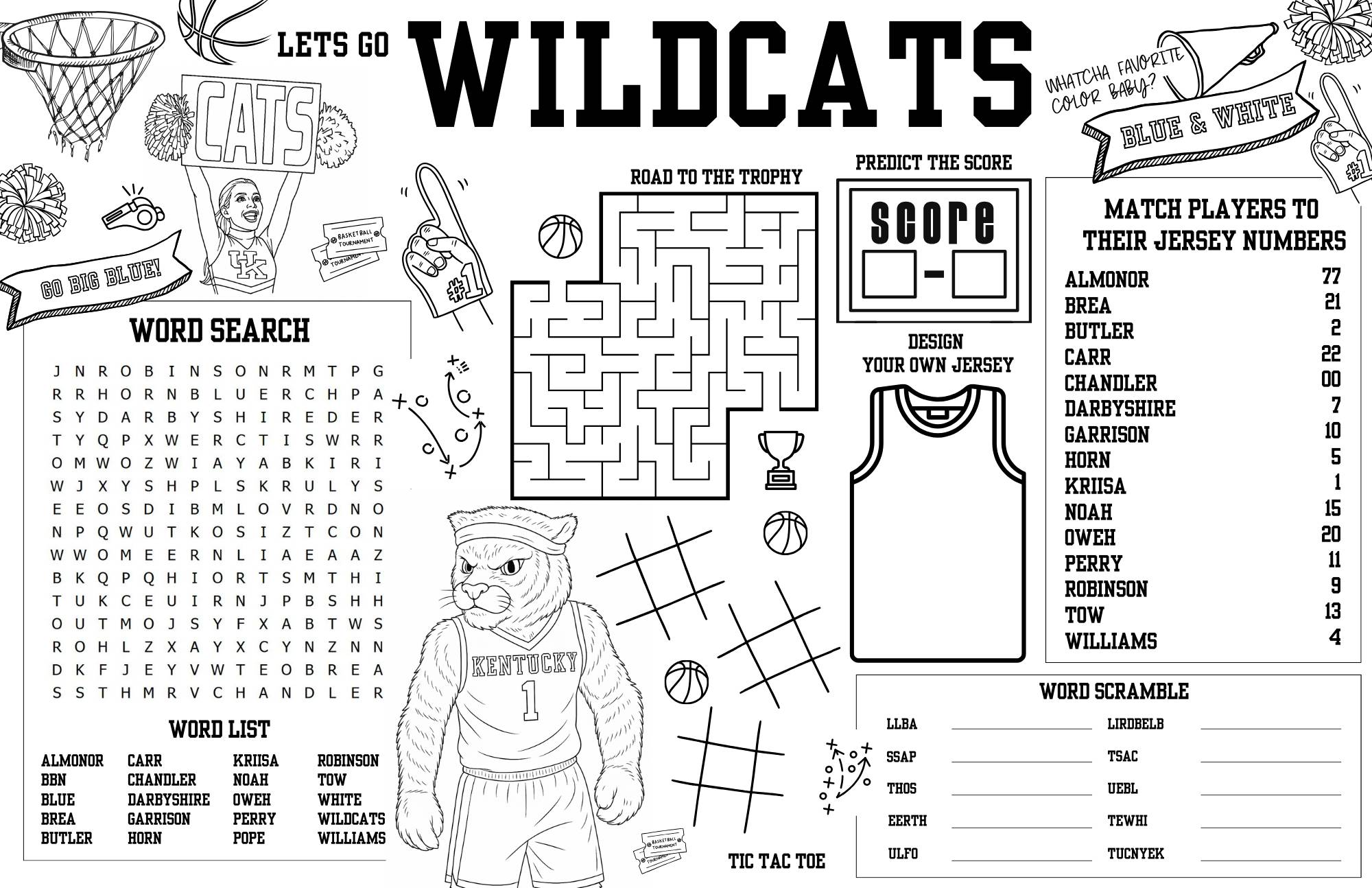 Make game day even more fun for your youngest fans! This printable placemat is full of Wildcats pride, coloring fun, and basketball games they'll love!